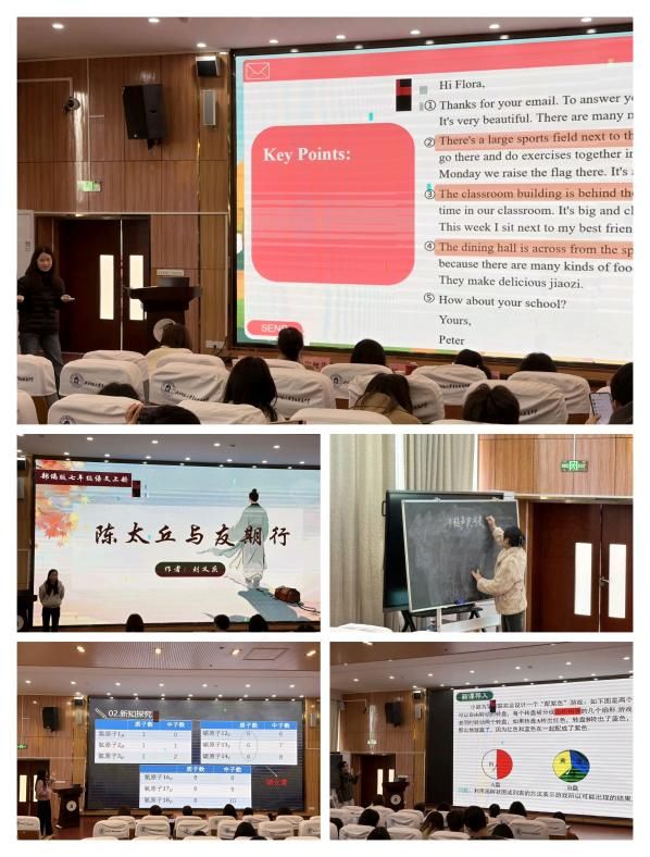 在北京市日坛中学贵阳分校,英语专业实习生邹雯珍的汇报课凝聚心血与思考,清晰的教学思路、流畅的课堂语言赢得师生认可;北京师范大学贵阳附属中学的实习生通过抽签开展 10 分钟无生课堂展示,涵盖语文、数学、英语等十个学科,完整呈现教学全流程,展现扎实成长积淀;观山湖区外国语实验中学的实习生张柏琳、刘子叶、黄蓉分别以音乐课《青年友谊圆舞曲》、英语课《We are family》《What a Delicious Meal!》为载体,展现不同学科的教学特色与个人风采;湖南师范大学附属贵安学校的十位实习生开展片段教学展示,其中实习生代表吴婷婷、谢清怡后续还分享了实习感悟,将专业知识与教学方法有机融合;观山湖区铭廷小学、铭苑中学的实习生杨晓芬,陈涛,周琼林,范馨镭,陆娟等巧用趣味提问、教具辅助等方式,让课堂生动鲜活,尽显“准教师” 的专注与活力。