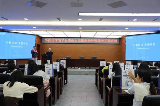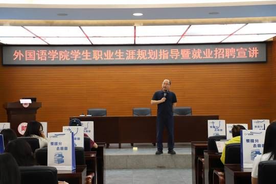 为进一步帮助学生深入了解当前就业形势与行业发展现状、提升职业生涯规划意识、树立正确的职业观念,4月13日,外国语学院在学校会议中心二楼报告厅举办了“学生职业生涯规划指导暨就业招聘宣讲”活动,贵阳田田教育常务副校长陈明怀担任主讲。外国语学院2022级、2023级学生参加。