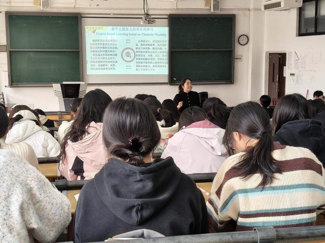 在实操指导环节,万丽结合丰富案例,从项目设计、小组分工、过程指导到成果展示,逐一拆解实操要点。她特别强调2022版英语课标提出的“学思结合、学用结合、学创结合”理念,引导学生做知识的主动构建者,在实践中内化语言知识,最终实现迁移创新、解决现实问题。互动环节中,她耐心解答小组管理、成果评价等疑问,“理论 + 案例 + 答疑” 的模式让师范生实现从 “概念认知” 到 “实操感知” 的跨越。讲座尾声,学院为万丽颁发荣誉证书,彰显对校地教研合作的重视。