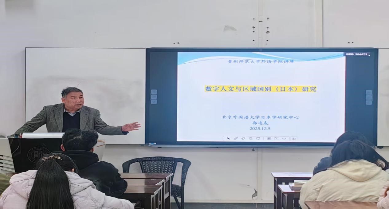 12月5日,北京外国语大学日本学研究中心原主任、教授、博士生导师郭连友受邀莅临我院讲学,日语系全体师生参加讲座,学院党委书记韦志奋主持。